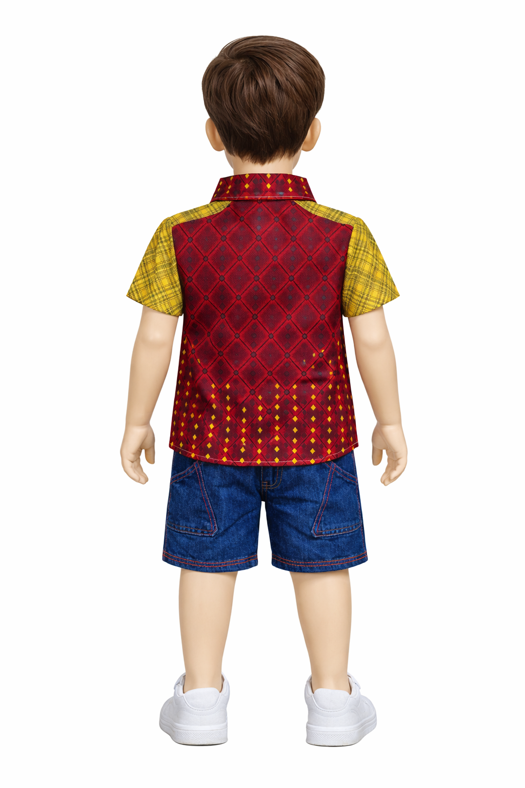 Stylish and comfy! The APM Designer Shirt & Denim Short Set brings a premium look with a perfect blend of soft fabric and trendy denim.