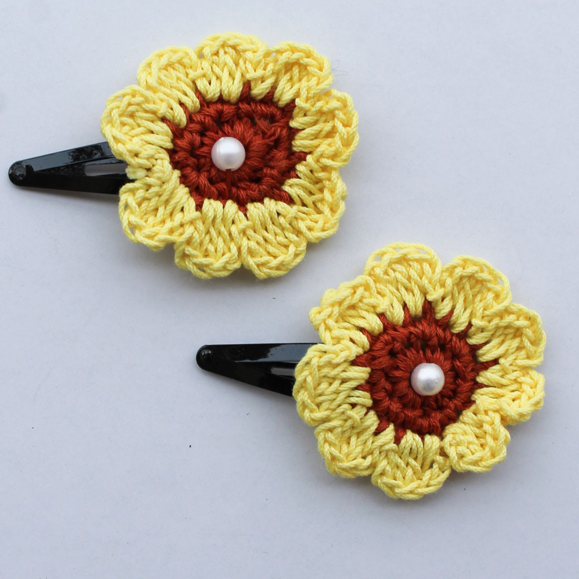Handmade Crochet Pearl Sunflower Tic Tac Hair Pins