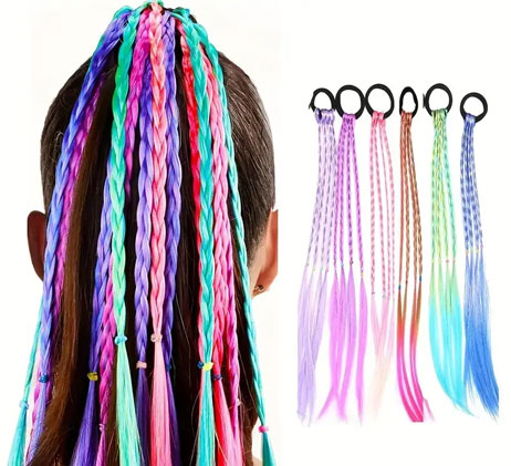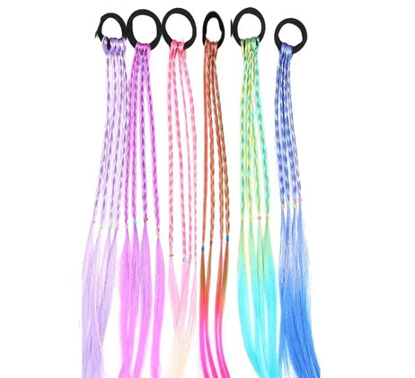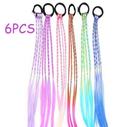 6pcs Girls Hair Accessories Set, Colorful Braided Wig, Ponytail Holders And Rubber Bands, Ideal choice for Gifts
