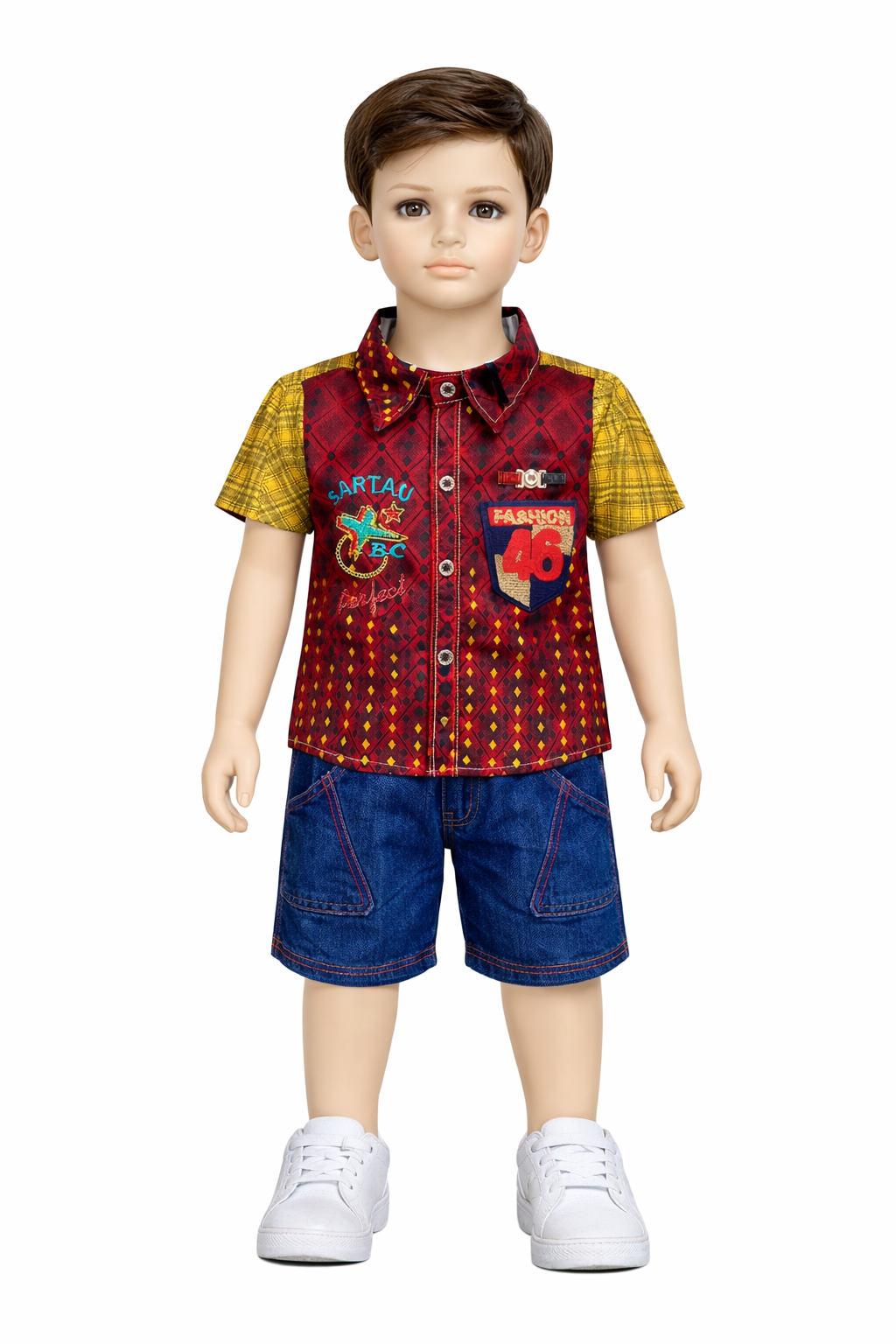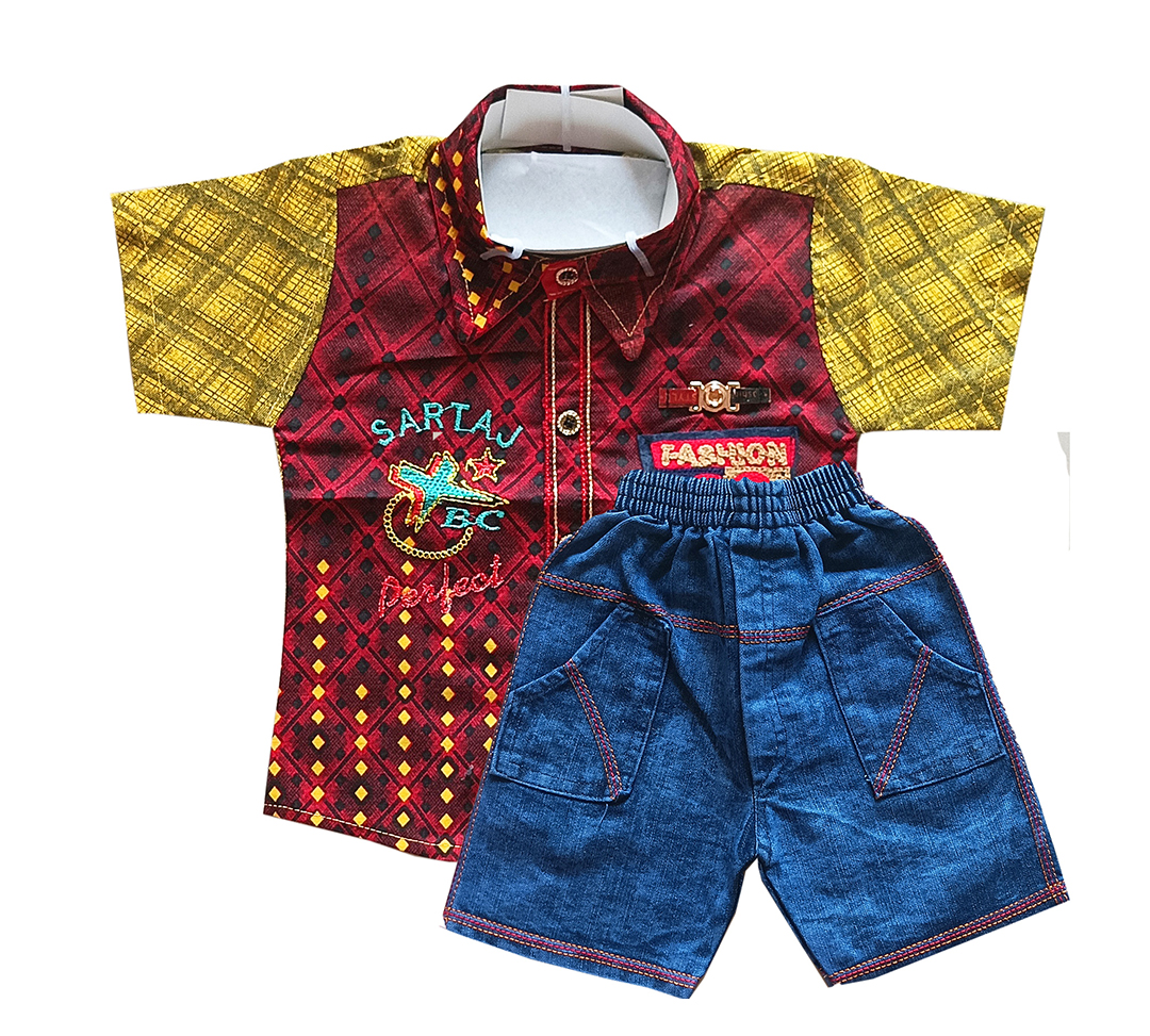 Stylish and comfy! The APM Designer Shirt & Denim Short Set brings a premium look with a perfect blend of soft fabric and trendy denim.